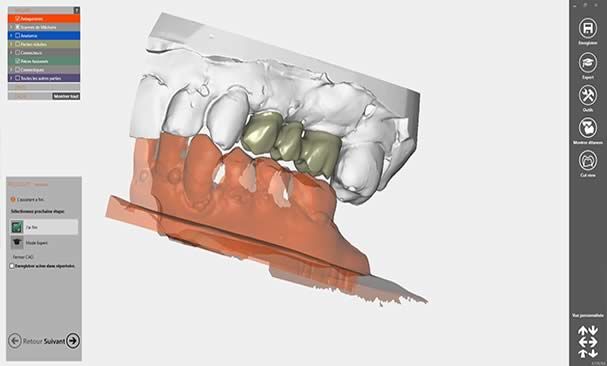Nous sommes équipés du logiciel de CAO dentaire ExoCAD qui permet de recevoir par internet tous types de fichiers STL émanant de caméras à prise d’empreinte intraorale. Ce procédé réduit considérablement le temps de réception d'empreintes et assure une meilleure réactivité.