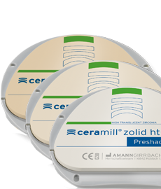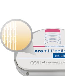 Zircone pré-teintée à très haute translucidité pour des prothèses complètes monolithiques ou comme base pour des restaurations esthétiques individualisées.