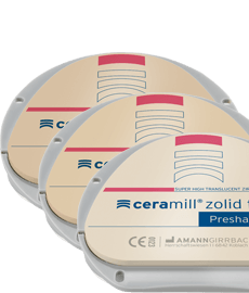 Oxyde de zirconium préteinté et hautement translucide, garant d'une efficacité et d'une esthétique élevées même sur les restaurations implanto-portées.